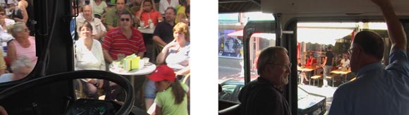 Für fußlahme eine bequeme Möglichkeit -es waren immerhin 35°C Grad im Schatten- die Strecke von der Danziger Straße zum Schützenplatz zurückzulegen. Auf diese Weise besuchte uns dann auch der Verkehrsmeister der Göttinger Verkehrsbetriebe GöVB, um währenddessen den eingeschränkten Stadtbusverkehr in die richtigen Bahnen zu lenken. |